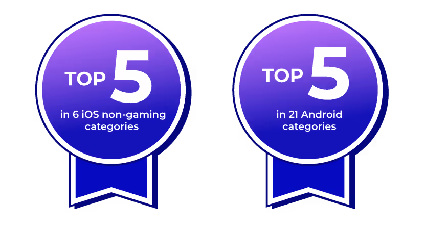 Top 5 platform in 6 iOS non-gaming categories across the world, including #1 across all categories in APAC and a Top 5 platform for 21 Android categories across gaming and non-gaming