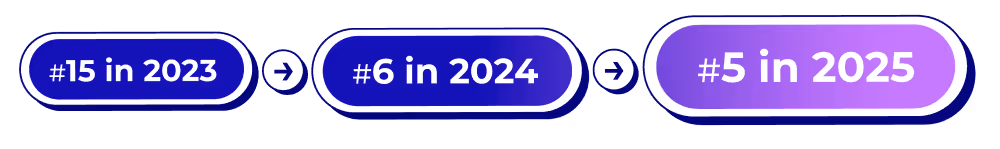 Based on the power ranking average across gaming, non-gaming, iOS, and Android, Moloco is now the #5 mobile growth partner, our highest ranking to date (up from #15 in 2023 and #6 in 2024).